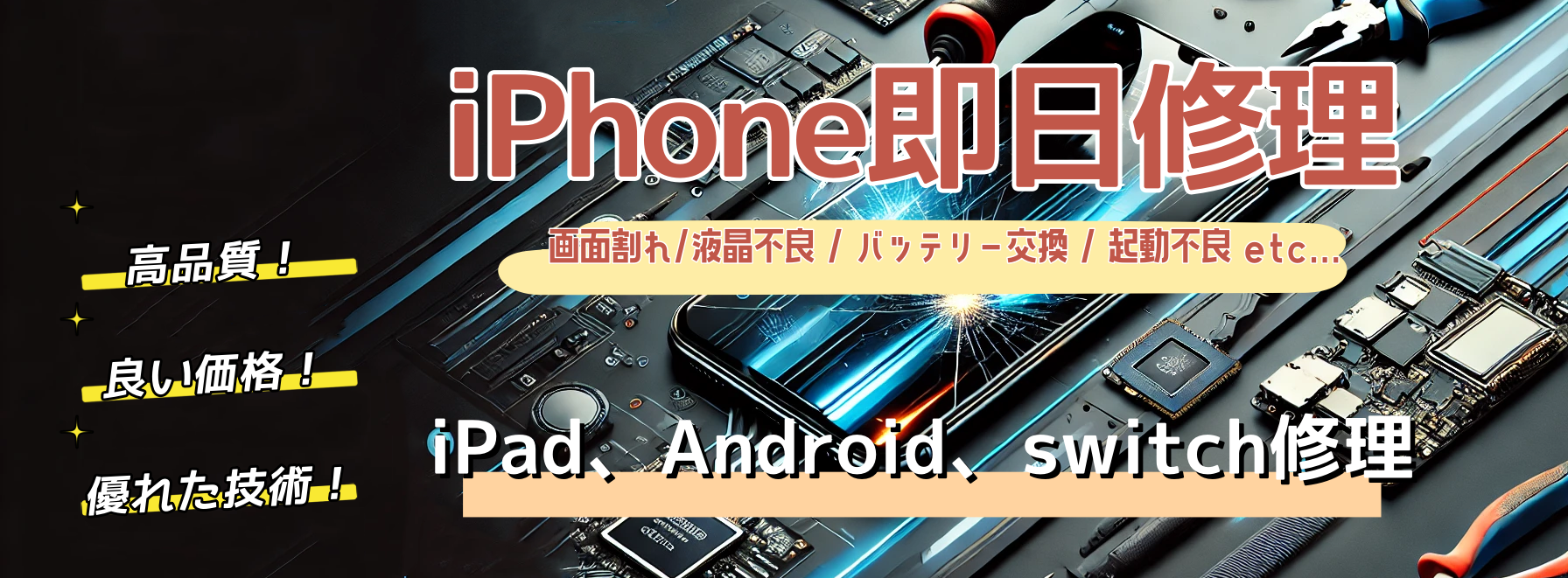 「効率的なサービスで社会価値を創造する」という企業理念のもと、迅速な携帯電話修理サービスをご提供いたします。